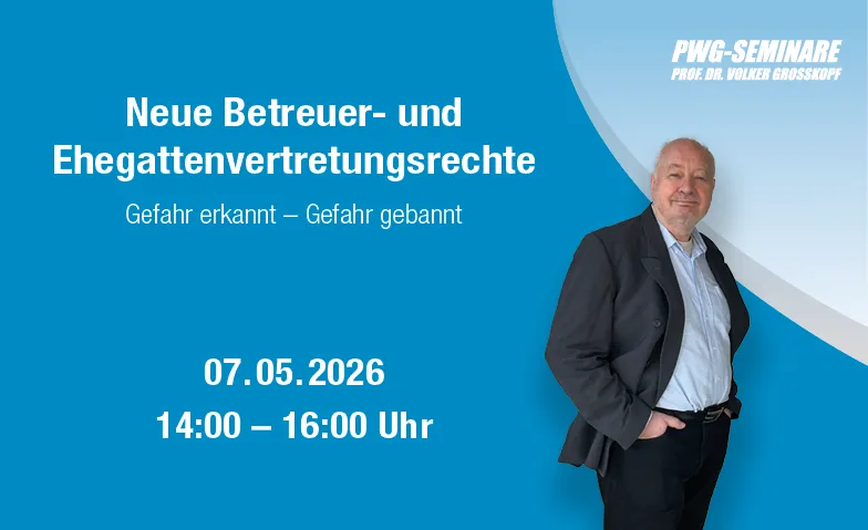 Im Medizin- und Pflegewesen gibt es vielfältige unauslöschbare Rechtsirrtümer – so zum Beispiel auch zur Frage, ob, wann und zu was man Patienten- oder Bewohnervertreter tatsächlich „unterschreiben" lassen darf. Das Seminar vermittelt verständlich das Basiswissen, die Strukturen und die einzuhaltenden Formalien bei Stellvertretung – einschließlich der seit 2023 veränderten Formalien bei Betreuung und Vollmacht sowie des neuen Ehegattenvertretungsrechts (§ 1358 BGB).