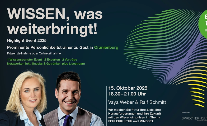 WISSEN, was weiterbringt! 2 Highlight Events 2025 Oranienwerk, Kremmener Str. 43, 16515 Oranienburg Billets