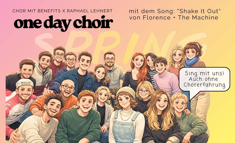 Ein Nachmittag voller Singfreude im einzigartigen One-Day-Choir! Eine Chance, Gemeinschaft zu spüren, neue Freund*innen zu finden und unsere unterschiedlichen Stimmen zu einem kraftvollen Klang zu vereinen. Wir vom "Chor mit Benefits" verstärken die Gruppe!