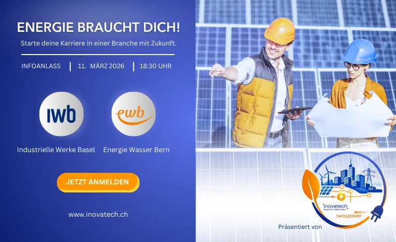 Der Wandel in der Energiewirtschaft schreitet rasant voran. Qualifizierte Fachkräfte sind gefragter denn je. Gemeinsam mit Swisspower bieten wir dir am Infoanlass eine ideale Gelegenheit, zukünftige Arbeitgeber:innen kennenzulernen und mehr über attraktive Weiterbildungsmöglichkeiten und Karrierewege zu erfahren.