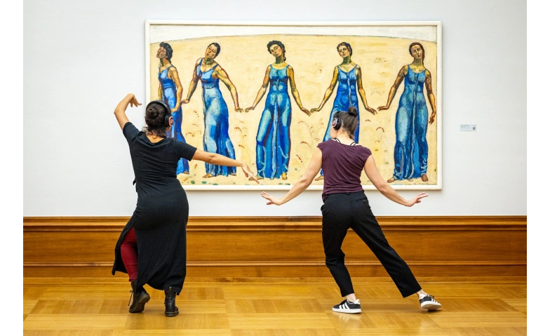 Zum Aufwärmen schlendern Sie mit Kopfhörern und Musik durch das Museum und wählen dann ein erstes Kunstwerk aus. Vor «Ihrem» Gemälde oder «Ihrer» Skulptur erhalten Sie Anregungen, wie Sie sich in Bewegung auf das Werk einlassen können. Formen, Linien, Strukturen, Farben, Details und Themen erkunden Sie, indem Sie diese mit dem Körper spiegeln, darauf reagieren und Ihrer Intuition oder Emotion folgen.