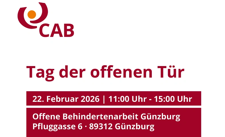 Die Offene Behindertenarbeit (OBA) der CAB Behindertenhilfe öffnet am 22. Februar ihre neuen Büroräume in der Günzburger Innenstadt und stellt ihre Angebote vor. Alle interessierten Besucher*innen sind herzlich willkommen.