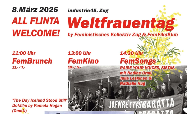 Die lebensfrohen Role Models, damals und auch heute in Aktion zu sehen, gibt Elan für mehr. Ab 14.30 Uhr, nach einem isländischen Dessert, geht es stimmungsvoll weiter. Wir freuen uns auf das Schlussbouquet mit drei geladenen Frauen: RAISE YOUR VOICES SISTAS!