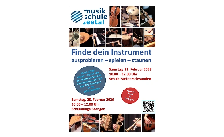 Finde dein Instrument ! Instrumentenparcours 2026 KMS Seetal