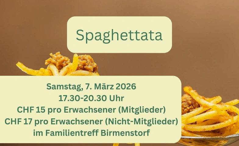 Der Familientreff Birmenstorf lädt herzlich zu einem gemütlichen Spaghetti-Abend ein. In entspannter Atmosphäre geniessen wir gemeinsam feine Spaghetti mit verschiedenen Saucen und verbringen einen geselligen Abend mit guten Gesprächen und fröhlichem Beisammensein.
