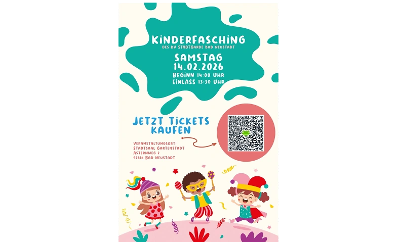 Kinderfasching der KVSG Stadtsaal Gartenstadt, Asternweg 2, 97616 Bad Neustadt an der Saale Billets