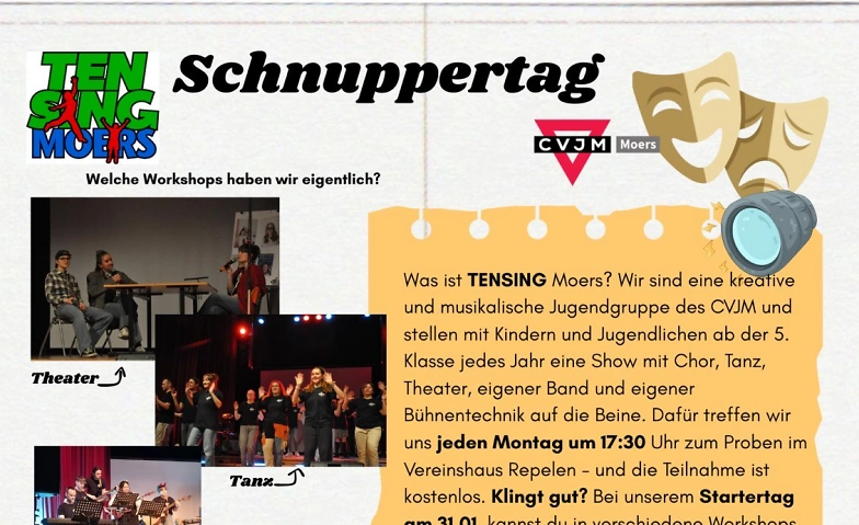 Du bekommst die Gelegenheit, unsere verschiedenen Workshops auszuprobieren und bekommst nebenbei die besondere Atmosphäre von TenSing mit!
