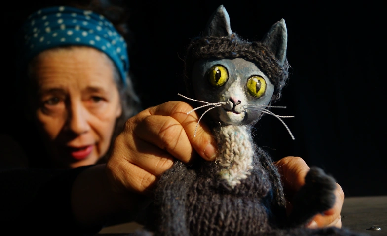 Theater mit Puppen und Musik, geeignet für Kinder ab 4 Jahren, gespielt auf einer kleinen Drehbühne.