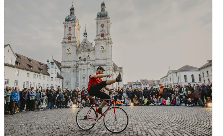 Einmal im Jahr zieht es über 100 Künstlerinnen und Künstler nach St. Gallen, um die Altstadt in ein lebendiges Jubelfest zu verwandeln. Von morgens bis abends präsentieren Artisten, Musiker*innen und Akrobaten aus der ganzen Welt an jeder Ecke ihr beeindruckendes Können.