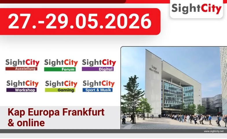 Jährlich wird das Kap Europa in Frankfurt am Main zum internationalen Zentrum für Innovation, Inklusion und Fortschritt. Als hybride Veranstaltung vereint die SightCity digitale und vor Ort erlebbare Formate und bietet so eine erstklassige Plattform für Fachleute, Betroffene und Interessierte.
