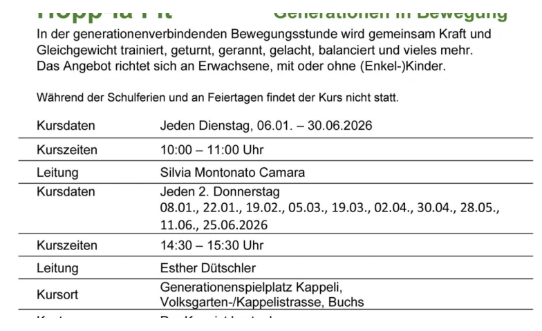 | mardi, 31.03.2026, 11:00 heure | Infos | |