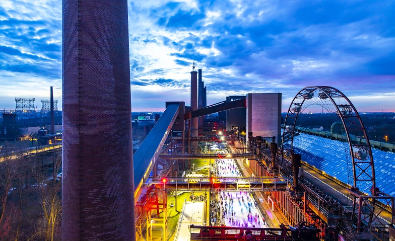 Für viele ist der Besuch der Zollverein-Eisbahn mittlerweile ein fester Programmpunkt in ihrer Freizeitplanung für die Wintersaison: Denn nicht umsonst gehört die spektakuläre Eisbahn entlang der imposanten Koksöfen und Schornsteine der Kokerei Zollverein wohl zu den faszinierendsten Eislaufgelegenheiten bundesweit. Besonders eindrucksvoll wird es am Abend, wenn die Lichtinstallation von Mark Major und Jonathan Speirs die ohnehin schon beeindruckende Industriekulisse in stimmungsvolles Licht taucht.