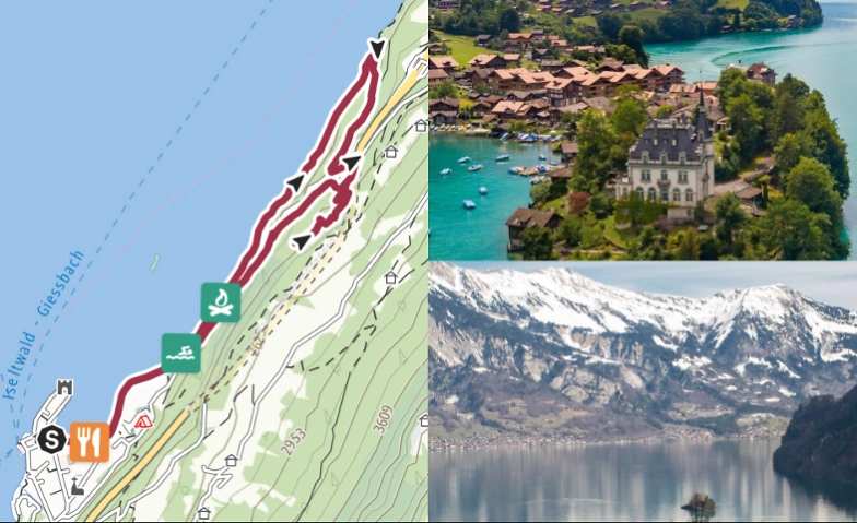 This circular route leads to the Farnihubel viewpoint, with a wonderful view of the small fishing village of Iseltwald, its bay and Seeburg Castle at the bottom of the peninsula.