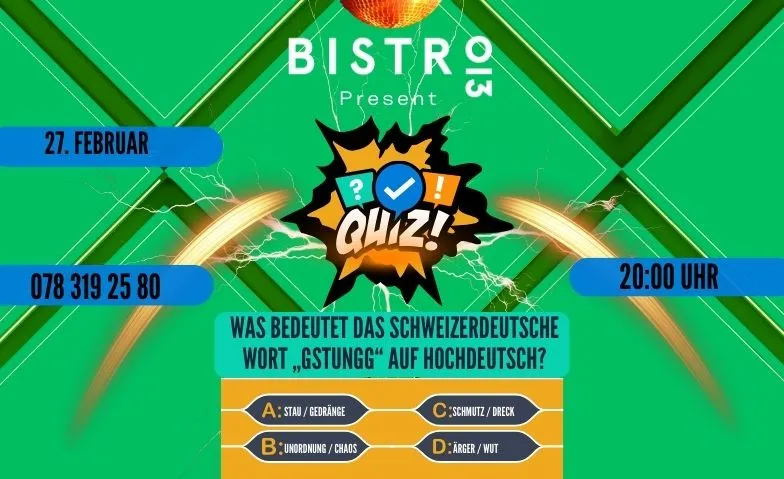 Am 27. Februar um 20:00 Uhr lädt das Bistro 13 zum unterhaltsamen Barquiz ein! Freut euch auf einen spannenden Abend voller kniffliger Fragen, guter Stimmung und cooler Preise.