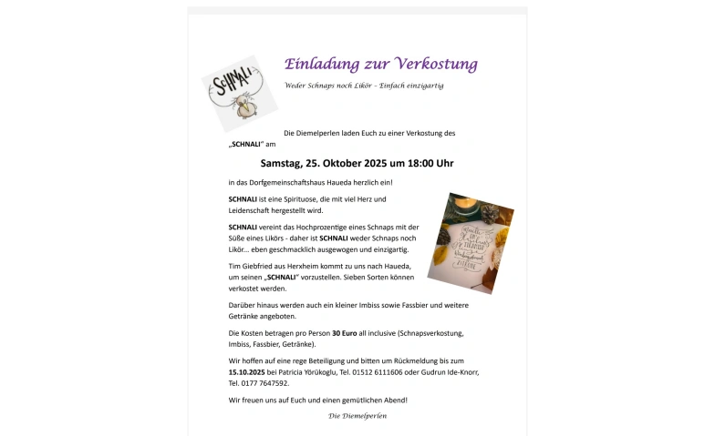 Einladung zur Verkostung - SCHNALI, Alte Lange Straße 6, Liebenau, DECatégorie: Manger & boire