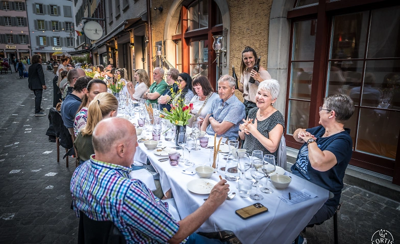 Man geniesse die festliche Tafel inmitten der Rathausgasse, freue sich auf fünf feine Gänge, jeweils aus fünf verschiedenen Küchen gezaubert! Von Cittadella bis Yukikun, nume s Bescht - dazu sechs verschiedene Weine aus dem Hause Cortis, welche auch den ganzen Anlass organisieren - ganz im Sinne der Badener Weintage. Auf Wunsch mit Vegi-Tickets. Bei schlechtem Wetter dislozieren wir in die FassBar.