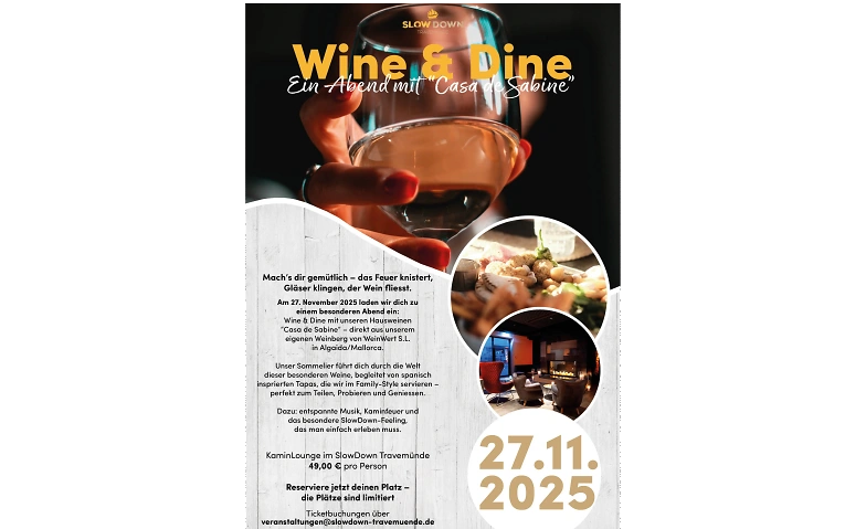 Am 27. November 2025 laden wir Dich zu einem besonderen Abend ein: Wine & Dine mit unseren Hausweinen “Casa Sabine” – direkt aus unserem eigenen Weinberg von Chatheu vino de la isla/Mallorca.