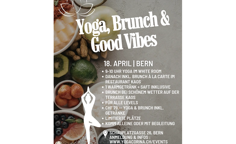 🕘 09:00 – 10:00 Uhr Yoga im White Room danach Brunch im Restaurant Kaos 📍 Schauplatzgasse 26, 3011 Bern (white room)