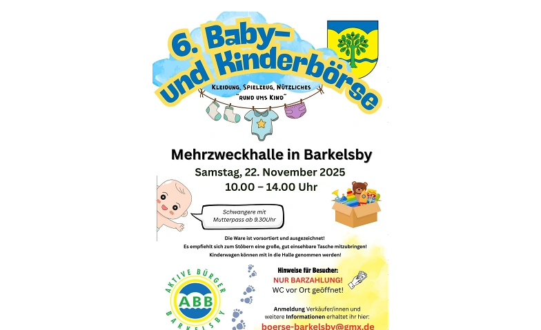 Wir laden ein zur 6. Baby- und Kinderbörse organisiert durch die Aktiven Bürger Barkelsby.