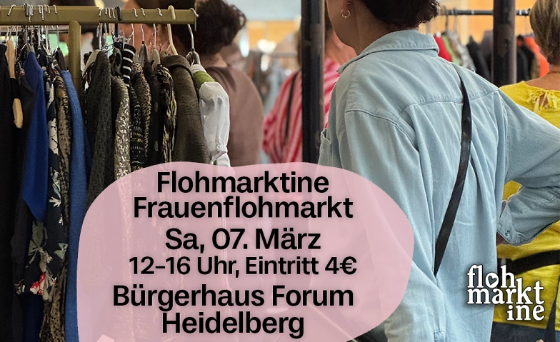 Samstag, den 07. März in Heidelberg!🫶✨ Flohmarktine Frauenflohmarkt, das nachhaltige Shoppingevent im Bürgerhaus Forum in Heidelberg (Emmertsgrund)!🛍️🌿 Du liebst Kleidung, Vintage & Accessoires? Bei uns gibt es alles, was dein Frauenherz begehrt!🫶