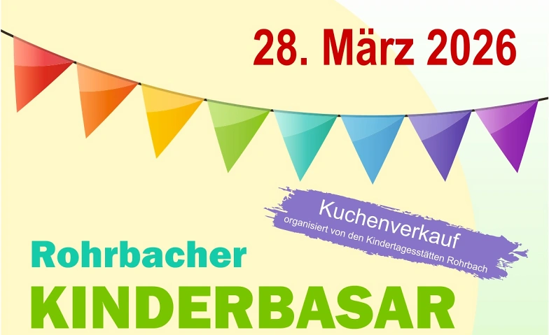 Der Rohrbacher Kinderbasar, organisiert vom Kleiderbasar Rohrbach e. V., findet am 28. März 2026 von 14:00 bis 16:00 Uhr in der Turmberghalle statt.