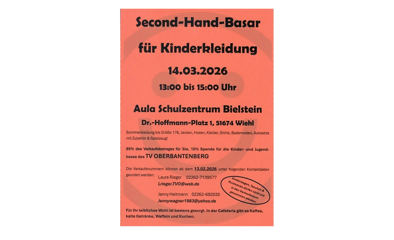 Second-Hand-Basar für Kinderkleidung des TV Oberbantenberg Dr.-Hoffmann-Platz, Dr.-Hoffmann-Platz 1, 51674 Wiehl Billets