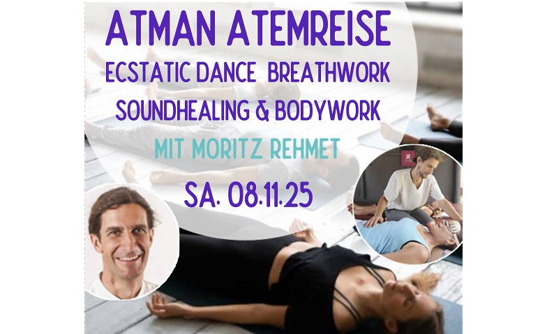 Für die ATMAN Atemreise verbindet Moritz Breathwork zum Auftakt mit Ecstatic Dance und zur Integration mit Klangheilung durch tibetische Planetenton Klangschalen sowie mit unterstützender Körperarbeit durch Craniosacral Therapie.