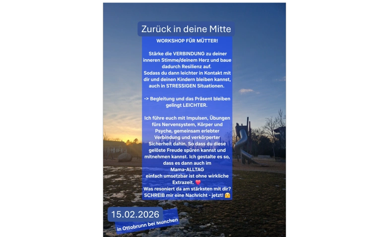Du weisst viel. Du funktionierst.Du organisierst. Du bist für alle da. Und irgendwo dazwischen hast du dich selbst ein Stück verlore, es erschöpft dich oder fühlt sich anstrengend an. Dieser Workshop ist ein geschützter Raum für dich als Mutter –zum Durchatmen, Loslassen und Wieder-bei-dir-Ankommen. Ohne Leistungsdruck. Ohne Erwartungen. Ohne „richtig oder falsch“. Für dich, wenn du dich manchmal innerlich unruhig oder erschöpft fühlst, dich wieder klarer, verbundener und geerdeter erleben möchtest nicht „leisten“, sondern spüren willst. Dir selbst wieder näherkommen möchtest – als Frau und als Mama. In diesem Workshop verbindest du sanfte Körperarbeit, bewusste Atmung und stille Momente der Wahrnehmung. Nicht, um besser zu werden, sondern um wieder bei dir anzukommen. Und so deine Mutterschäft wieder mit echter Präsenz und Freude verkörpern zu können! Ich begleite dich mit Präsenz, Klarheit und einem feinen Gespür für das, was du gerade brauchst. Dieser Workshop ist kein Programm, sondern eine Einladung, dich wieder zu spüren. Viele Mütter beschreiben nach dem Workshop: „Ich bin wieder ruhiger in mir.“ "Ich habe wieder mehr Freude im Mama-Leben" „Ich fühle mich klarer und verbundener.“ „Ich bin gelassener mit meinen Kindern.“