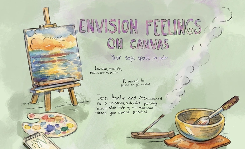 Envision Feelings on Canvas is a guided, embodied workshop that invites participants to reconnect with a personal sense of safety and calm through meditation, gentle movement, and intuitive painting.
