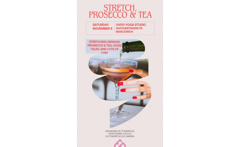 Stretching, Prosecco & Tea with Powerflex VVOO YOGA STUDIO  (oberhalb Monocle), Dufourstrasse 90, 8008 Zürich Billets