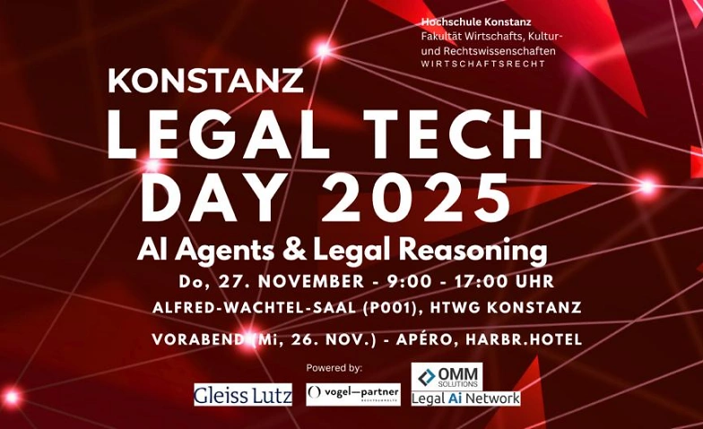 Der Studiengang Wirtschaftsrecht der HTWG Konstanz organisiert am 27. November 2025 den 6. Konstanzer „Legal Tech Day".