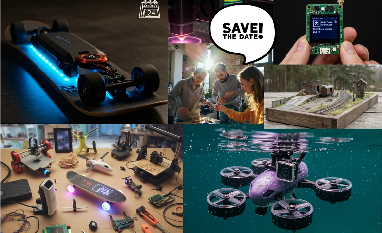 Wir bringen die Community zusammen, um DAS gemeinsame Projekt 2026 zu finden – ob E-Skateboard, Unterwasser-Drohne, GPS-Tracker fürs E-Bike oder deine eigene verrückte Idee. Von Holz über Metall, 3D-Druck, Elektronik bis hin zu KI – alle Disziplinen sind willkommen!