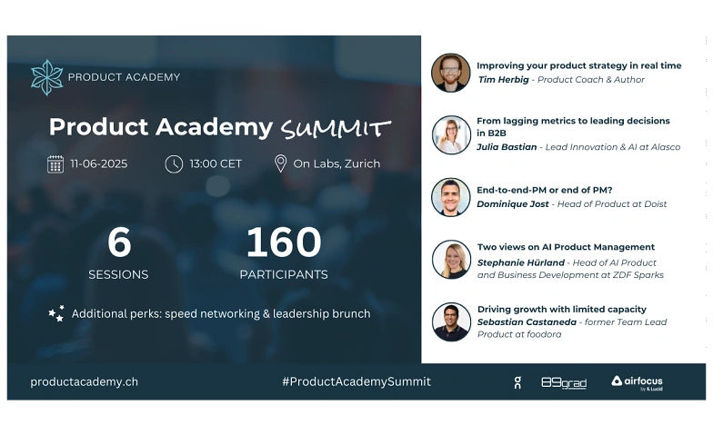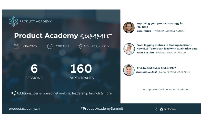 ...Get ready for the Product Academy Summit - a PM event you don’t want to miss! Join us on June 11, 2026 in Zurich for a day filled with valuable insights and innovation.