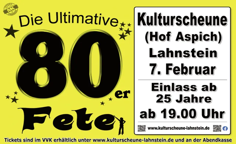 Kulturscheune Lahnstein, Hof Aspich, Lahnstein, DECatégorie: Soirée & Fête / 80's