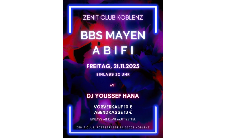 ABIFI Feier Zenit Club Koblenz, Poststraße 2A, 56068 Koblenz Billets