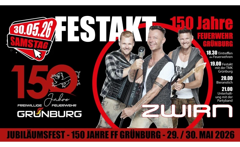 Jubiläumsfest 150 Jahre Feuerwehr Grünburg Festakt est organisé par: