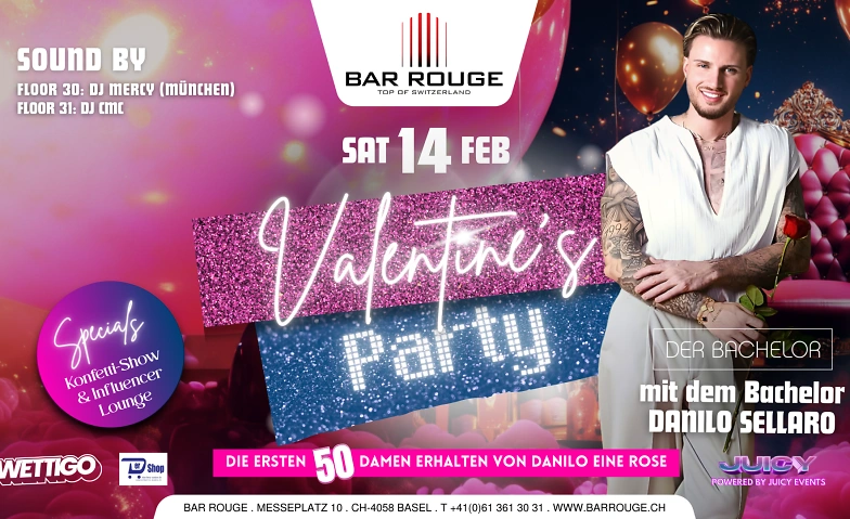 Am Samstag, 14. Februar wird die Bar Rouge zur Bühne für eine ganz besondere Valentine’s Night. Glamour, Club-Vibes und eine Atmosphäre voller Herzklopfen erwarten euch hoch über den Dächern von Basel.