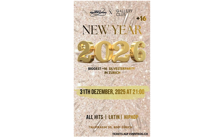 BIGGEST NEW YEAR 2026 PARTY +16 Gallery Club, Talstrasse 25, 8001 Zürich Billets