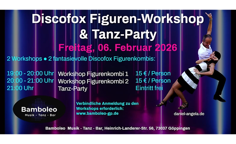 Discofox Figuren-Workshop & Tanzparty Bamboleo Göppingen, Heinrich-Landerer-Straße 56, 73037 Göppingen Billets