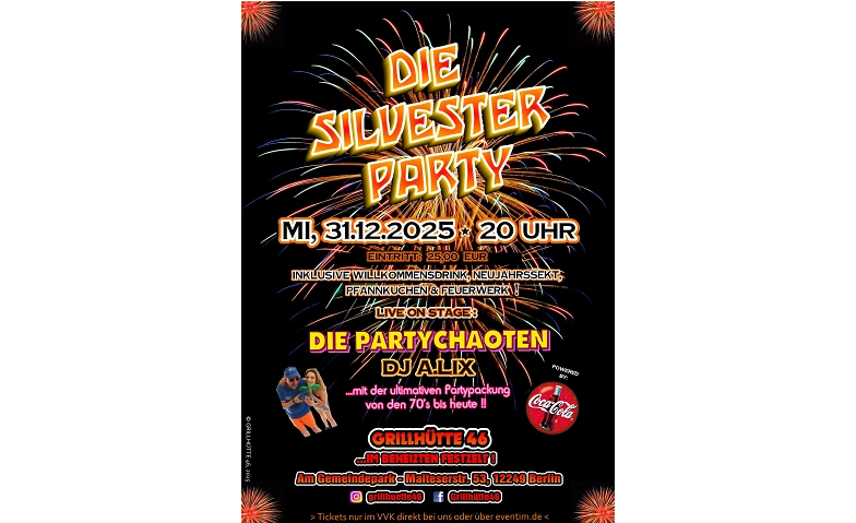 🎉 Die Zeit rennt! Bald ist Silvester und ihr fragt euch, wo die beste Party steigt? 🌟 Wir von der Grillhütte 46 bringen die Party nach Lankwitz! Feiert mit uns die geilste Party der Stadt! 🥳