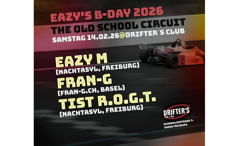 Eazy's B-Day 2026  The Old SCHOOL Circuit Drifter's Club, Schnewlinstraße 7-9, 79098 Freiburg im Breisgau Billets