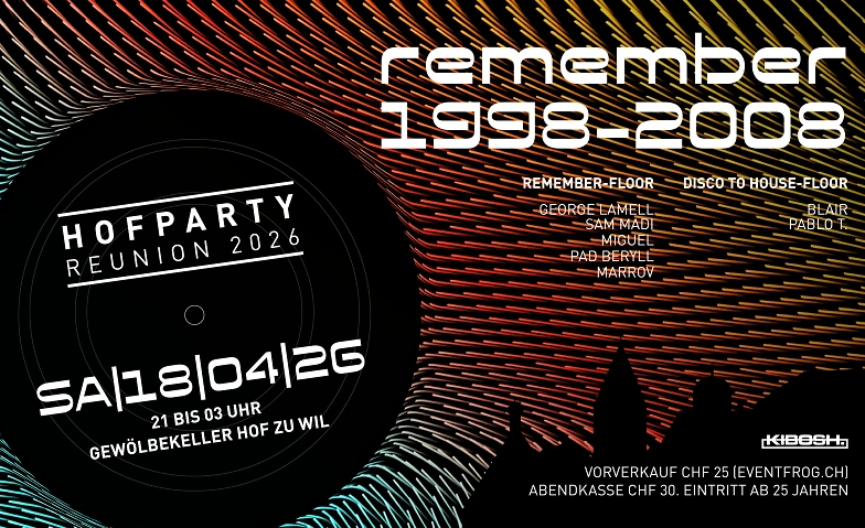 HOFPARTY Reunion 2026 Gewölbekeller Hof zu Wil, Marktgasse 88, 9500 Wil SG Billets