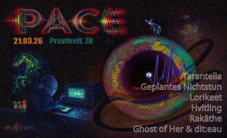 We are beyond excited to invite you to the third edition of the Planetary Alliance for Collective Enlightenment (PACE) on the 21st March 2026 at Provitreff (ZH) from 21:30 onwards. From this moment on we will start our flight through cosmic spaces powered by dancey vibrations all the way until the early morning hours. A soft landing will await you as usual, to safely welcome your mind back into your tired bodies. We are already beyond excited to reunite with all of you and experience that journey together.