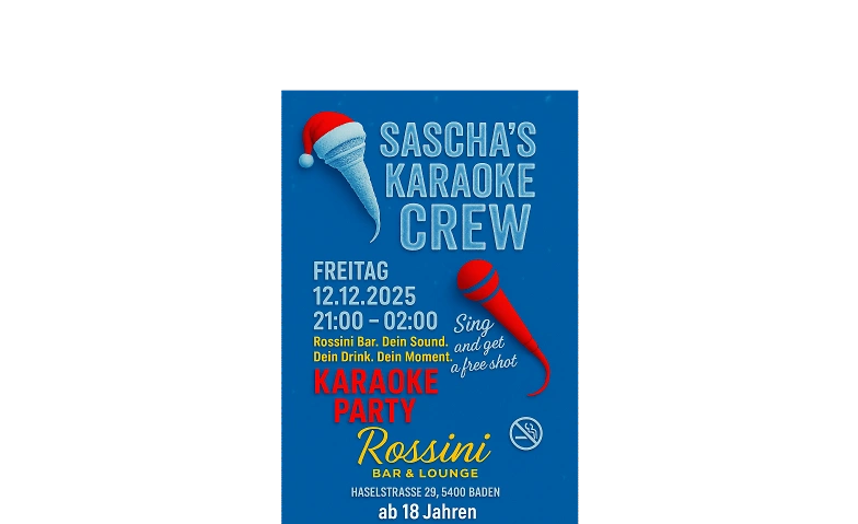 Kommt vorbei, bringt eure Freunde mit und feiert mit uns einen unvergesslichen Karaoke-Abend voller Spass, Musik und guter Vibes.