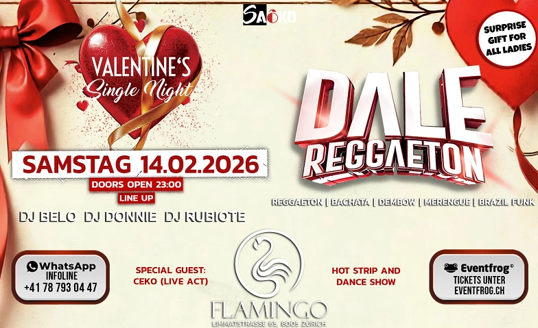 DALE REGGAETON - VALENTINE‘S SINGLE NIGHT Flamingo Club, Limmatstrasse 65, 8005 Zürich Billets