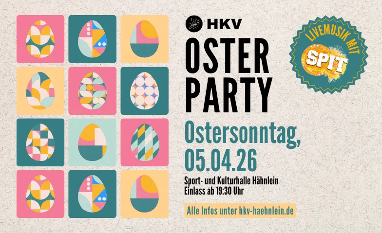 Hähnleiner Osterparty 2026 Sport- und Kulturhalle Hähnlein, Marktstraße 3, 64665 Alsbach-Hähnlein Billets