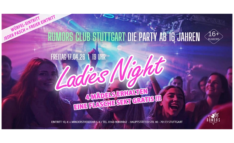 DIE PARTY ab 16 Jahren - Stuttgarts angesagteste 16er Party! Rumors Club Stuttgart, Hauptstätter Straße 40, 70173 Stuttgart Billets