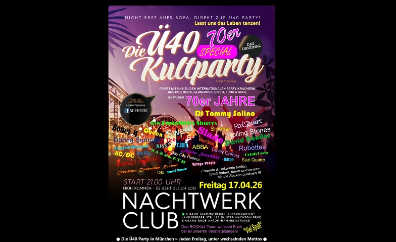 ► Location: Ü40-Party von Rock44 im Nachtwerk Club München, Landsberger Str. 185, 80687 München 📌