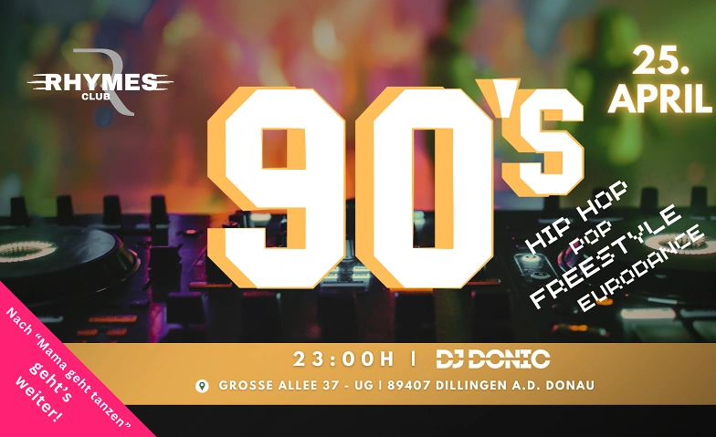 Am 25. April drehen wir die Zeitmaschine direkt nach „Mama geht tanzen“ noch einmal richtig auf. Wenn die Lichter bei der ersten Party ausgehen, legen wir im Rhymes Club erst so richtig los!
