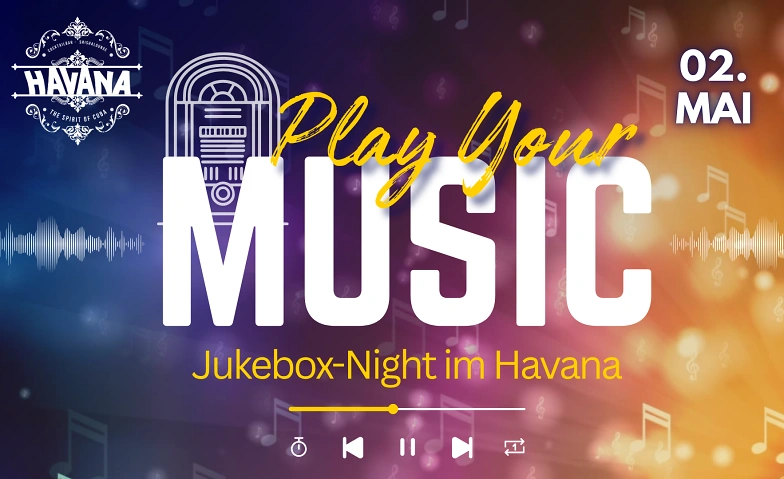 Unter dem Motto "Play your Music – Jukebox-Night im Havana" entscheiden nicht wir, was läuft, sondern die Crowd. Egal ob Oldschool Hip-Hop, aktuelle Charts oder eure liebsten Party-Hymnen – wenn ihr und eure Freunde es hören wollt, dann läuft es auch!